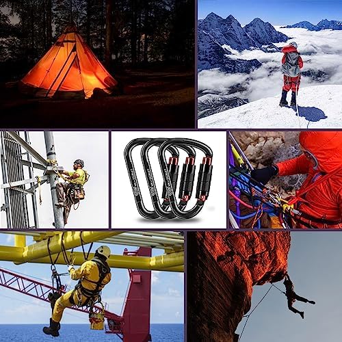 【Auto Locking Carabiner 】These aircraft grade aluminum climbing carabiners are great for all activities like rock climbing, ice climbing, rappelling, rescue, swing, aerial yoga, camping and hiking etc.