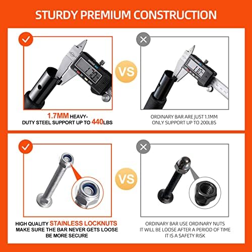 💪 HEAVY DUTY CONSTRUCTION: Made of 1.7mm thickened refined heavy steel and the fine powder coating prevent rust and corrosion.It is much better than others just for the extra safety .It can hold up to 440 pounds. And the handles are coated with high fiber foam, comfortable grip, multi-function, anti-slip and wear resistance.