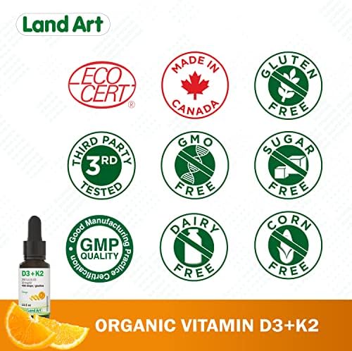 Land Art Canada certifications natural liquid supplements certified organic vitamin D3+K2Land Art Canada certifications natural liquid supplements certified organic vitamin D3+K2