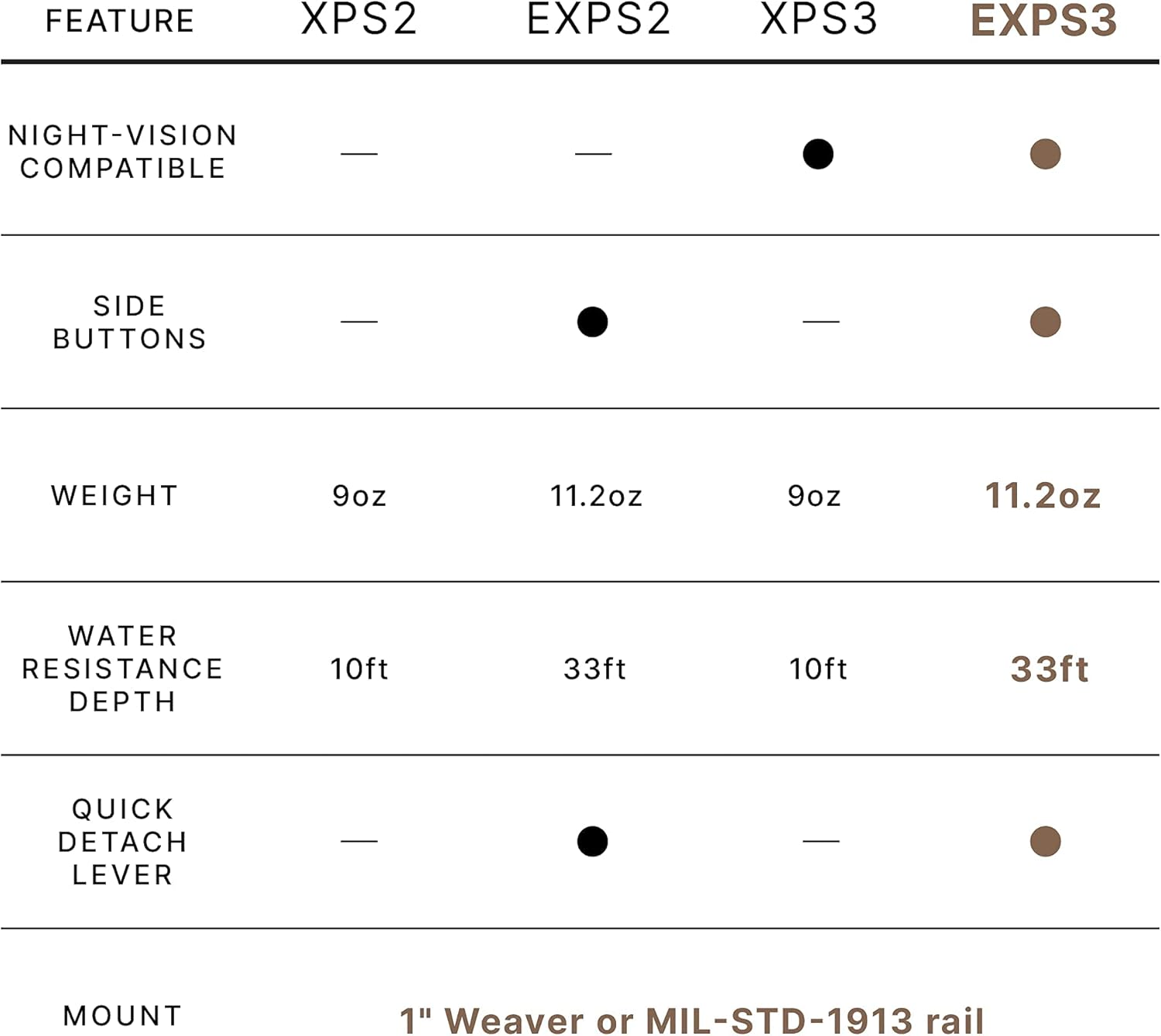 Side Button Operation – Compact design and side button operation consumes minimal rail space and is ideal for use with a G33 Magnifier