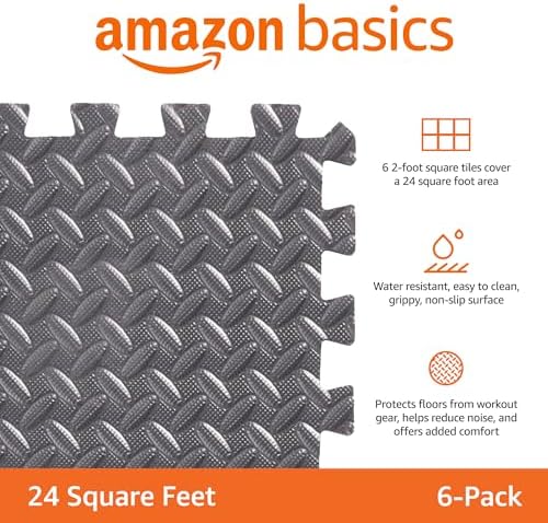 Amazon Basics EVA Foam Interlocking Exercise Gym Floor Mat Tiles – Pack of 6, 24 x 24 x .5 Inches, Grey