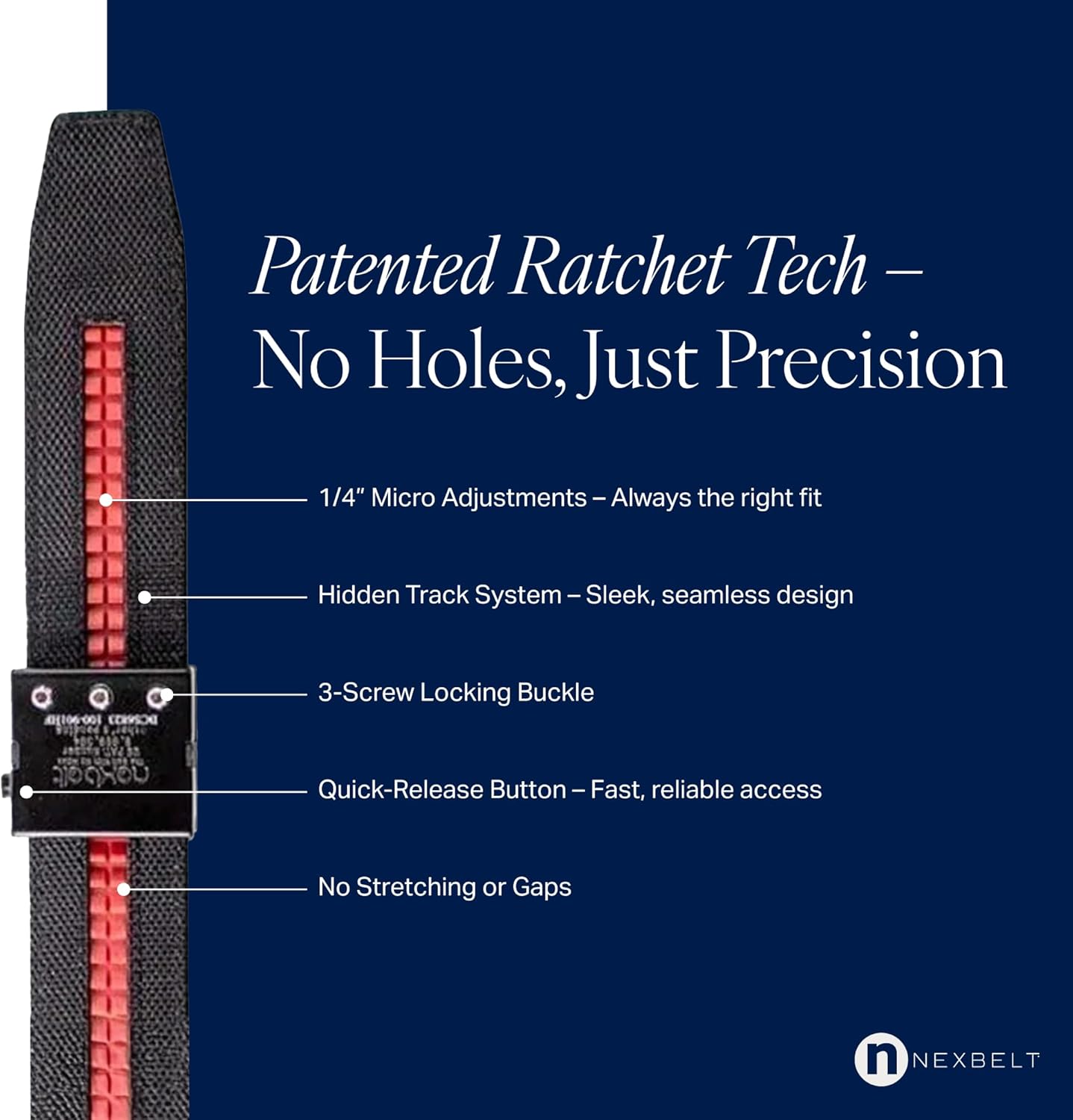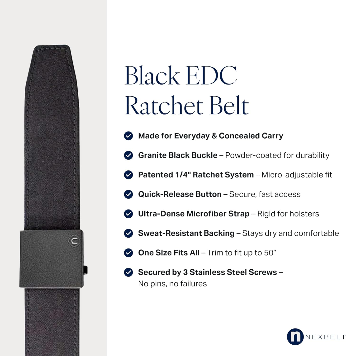 Nexbelt EDC Tactical Ratchet Belt – 1.5″ Black Nylon, Quick-Release, Adjustable