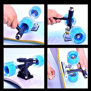 🛹【All-in-one Design】The All in One skate tool offers everything you need to tighten or repair your skateboard. This skateboard tool works with all types of skateboards and longboards. It can help you change the wheels and clean the bearing.