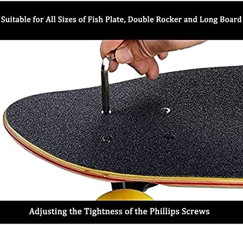 🛹【Innovative Construction】The T-shaped skateboard tool contains 3 different base sizes and a removable Phillips screwdriver that fits over the top of the handle when not in use.