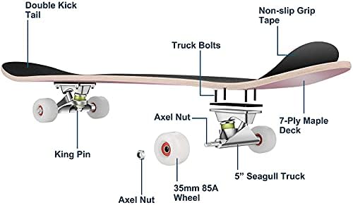 Skateboard Complete Deck 7 Layers 31″x8″ Pro Complete Skate Board Maple Wood