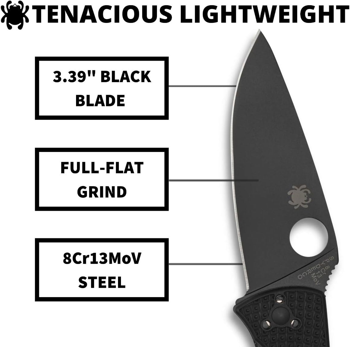 The Spyderco Tenacious is a mid-sized folding knife that is perfect for any outdoor enthusiast. This versatile tool packs incredible performance and value into a single piece of steel. Its leaf-shaped blade is full-flat ground from 8Cr13MoV stainless steel for superior strength, edge retention, and toughness. Paired with its ergonomic black G-10 laminate handle or Lightweight Fiberglass handle, the Spyderco Tenacious gives you excellent grip and control during prolonged cutting jobs.